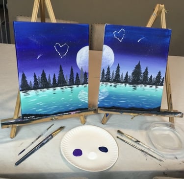 Turn your date night into a masterpiece with our private Couples Paint & Sip workshop! You and your partner will each paint your canvas, and when combined, they’ll create one beautiful picture—just like the two of you.
