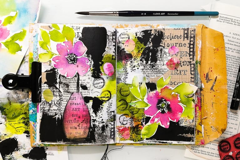 Whether for a birthday, team-building, or simply creative fun, book your Art Journaling Workshop today and start crafting your unique story!